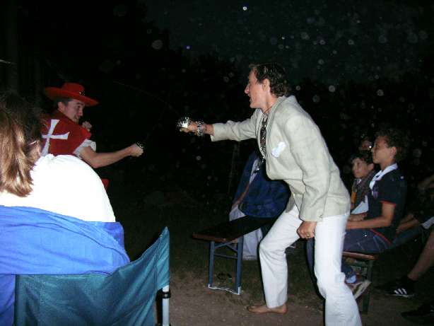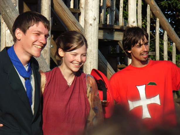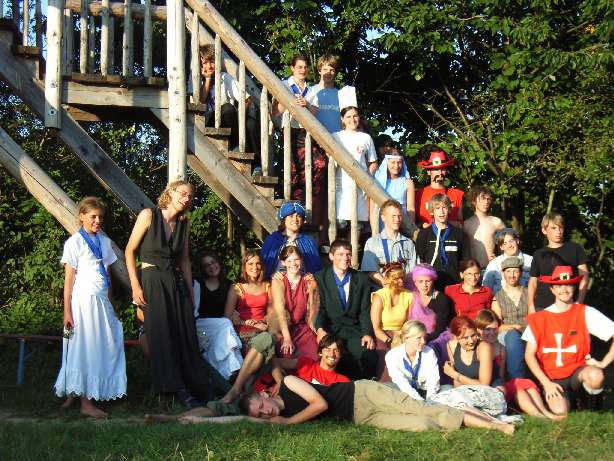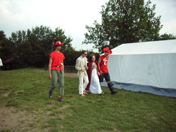 So war Cobra beschäftigt mit verschiedenen schwierigen Aufgaben. Sie mussten Knoten beherrschen um Rapunzel zu befreien. Sie brachten Hänsel und Gretel mit Karte und Kompass nach Hause, weil diese sich verlaufen hatten. Bei den Bremer Stadtmusikanten war eine kreative Krise eingetreten. Die kleine Hexe, der König aus dem Schlaraffenland und ihre Kollegen mussten ihnen ein Lied für den Bremer Singewettstreit beibringen. Auch Rotkäppchen hatte ein Problem, dass mit einem schönen Blumenstrauß für die Großmutter bald gelöst war. Schließlich mussten sie beim Tischlein-Deck-Dich die Zutaten für den Stärkungstrank erraten und Rumpelstilzchen half beim Trank brauen. Alles in allem verlief der Tag äußerst erfolgreich und alle Aufgaben wurden erfüllt: der Junge konnte kommen! Währenddessen hatten auch Mecki, Schneeweißchen und ihr Alhambra keinen einfachen Nachmittag. Man musste ja den Bräutigam finden, was sich nicht gerade als leicht erwies. Eine wenig erholsame Nacht folgte auf einen langen Fußmarsch in der unbekannten Wildnis. In der Nacht wurden sie jedoch von fiesen Trollen überfallen und fanden keinen Schlaf. Nach einem anstrengenden und aufbrausenden Gemetzel fanden sie eine Möglichkeit für einen Dimensionssprung und schließlich auch den Jungen und brachte ihn am nächsten Tag ins Lager. Leider hatte man auch Verluste/Verwundete zu beklagen: Im allgemeinen Chaos der letzten Nacht hatte sich Aladdin Verletzungen zugezogen, die sich schließlich als Rippenbruch herausstellen sollten. Der Nachmittag wurde zur Erholung genutzt. Cobra jedoch erlebte schon wieder Abenteuer. Mit Kanus wurde der Fluss erfolgreich nach weiteren Sternschnuppen abgesucht! Am Abend war man nun wieder vereint. Das wurde mit einem Entspannungsabend „gefeiert“. Konkret bedeutete das, Massagen und gemütliches Beisammensein für Rosenrot, den gestiefelten Kater und die, in Zufriedenheit erschöpften Märchenfiguren. Der glückliche Höhepunkt des Abends war die Zusammenführung der Prinzessin mit ihrem Jungen, die vom König jedoch mit argwöhnischen Blicken bedacht wurde.