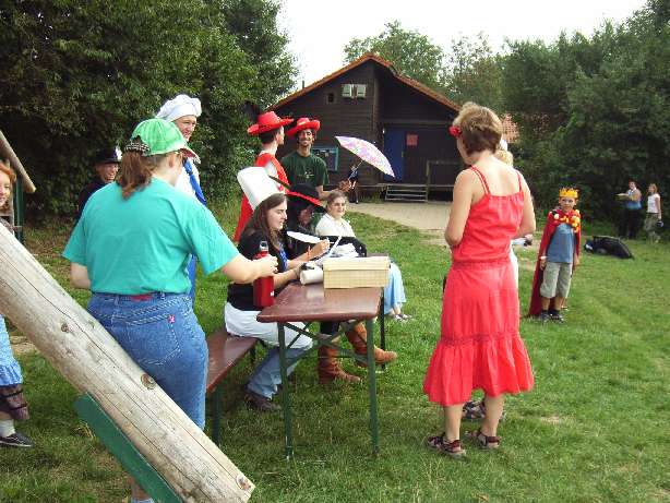 Denn diese Märchenfiguren sind ein durchaus eigenwilliges Volk! Alle, von Aladdin bis zu dem Zwerg sollten König und Königin begrüßen und sich in das große Märchenbuch einschreiben lassen, was sehr viel Zeit erforderte. Als die Ankunftsphase ihr Ende nahm, wurden Gruppen gebildet die gemeinsam ein Puzzlerätsel zu lösen hatten und anschließend ihr Schlafgemach aufbauen sollten.