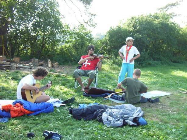 Der Nachmittag wurde wiederum für die wichtige Überzeugungsarbeit geopfert. Überschüssige Energie, konnten Ritter Georg und der Pirat bei Sportspielen nach dem Abendessen loswerden. Der Abend klang beim gemeinsam Abend mit ein paar Spielen und, wie sollte es anders sein, Märchen aus. Am Lagerfeuer zeigte sich außerdem jeden Abend die Musikalität der gesamten Hochzeitsgesellschaft.